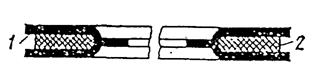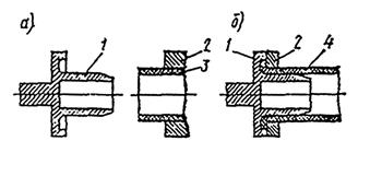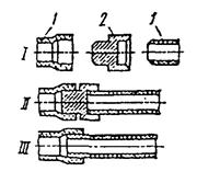 вставки на подготовительный торец трубы; д) сборка соединительного узла