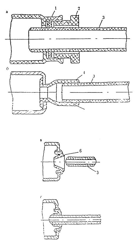 3.11. Сборка соединений с обжимным кольцом и накидной гайкой и резьбовой вставкой (рис. 3.2):