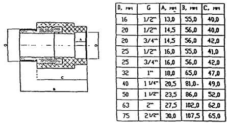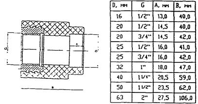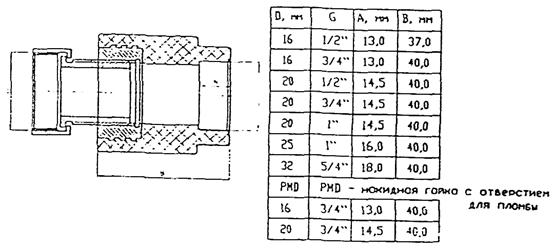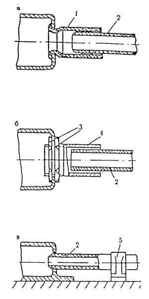 Для присоединения МПТ к деталям, имеющим внутреннюю резьбу, необходимо использовать ниппель с уплотнением резьбовой части. Соединения МПТ между собой или присоединение к приборам, имеющим внутреннюю резьбу, следует выполнять с помощью накидных гаек и соединительных вставок с наружной резьбой с уплотнением резьбовой части (см. рис. 3.1 а).