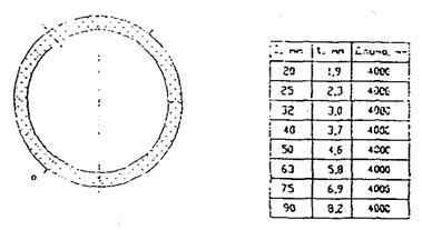 За основу нормализации принят наружный диаметр, который при изменении толщины стенки остается постоянным, а внутренний диаметр изменяется соответственно. Полный ряд наружных диаметров пластмассовых труб (в мм) следующий: 10; 12; 16; 20; 25; 32; 40; 50; 63; 75; 90; 110; 125; 140; 160; 180; 200; 225; 250; 280; 315; 355; 400; 450; 500; 560; 630; 710; 800; 900; 1000 и 1200.