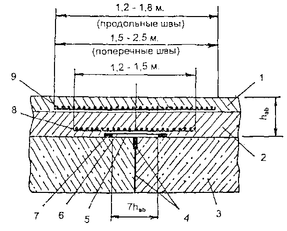 в) неравномерные вертикальные перемещения плит (в том числе взаимные) при некачественном состоянии основания (просадки и переувлажнение) - неизбежные при усилении эксплуатируемых длительное время жестких покрытий;