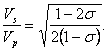 Отношение скоростей объемных волн будет иметь вид