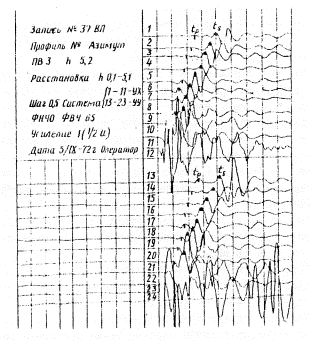 При слоистом характере среды в верхней части разреза образуется так называемая псевдорелеевская волна подобная волне Релея в однородной среде /1/. Скорость псевдорелеевской волны зависит от ее длины λR, т.е. имеет место дисперсия скорости.