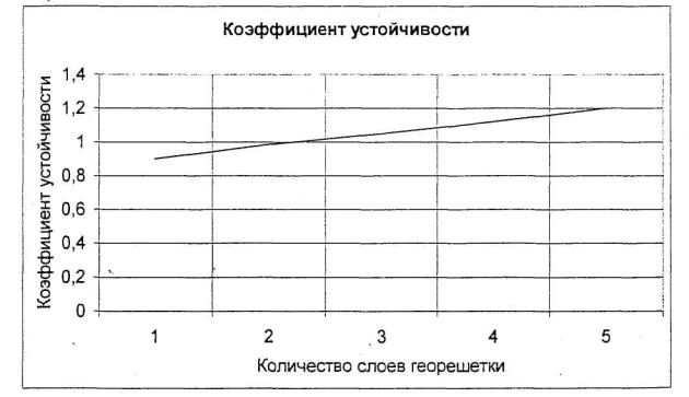 Вопрос о конструкционном оформлении насыпи, представляющей собой композитное объединение мембран из георешетки «Прудон-494» и послойно армированной насыпи с расчетом количества мембран и потребного числа слоев георешетки, может решаться в каждом конкретном случае, в зависимости от мощности торфяной толщи и характеристик торфа. Гeopeшетки «Прудон-494» являются основным элементом подобных насыпей, поскольку наиболее полно отвечают требованиям композитного конструирования - придания целенаправленных свойств конструктивным элементам и включения их в работу сооружения - в данном случае упрочнения грунтового массива и восприятия растягивающих напряжений при его нагружении полезной нагрузкой.