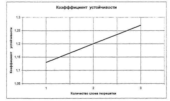 Конструкция армогрунтовой насыпи для усиления и стабилизации ее основания армируется георешеткой «Прудон-494» в виде композитной системы с использованием геотекстиля (типа «Дорнит») для формирования геомембран.