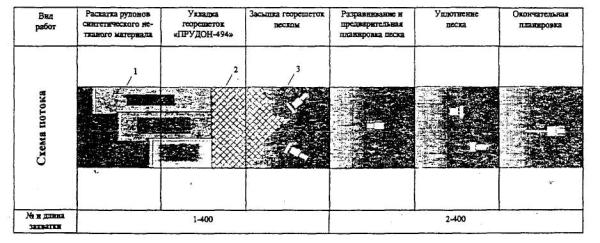 1 - синтетический нетканый материал; 2 - «ПРУДОН-494»; 3 - песок.