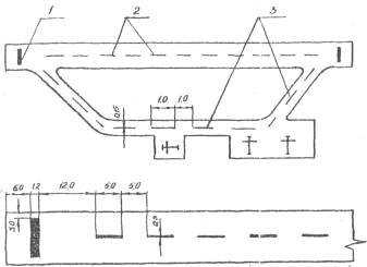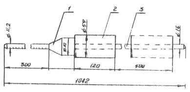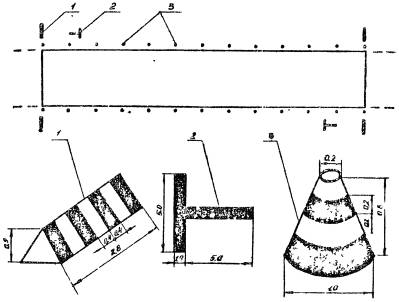 Условная прочность грунта может быть определена ударником У-1 (рис. 1), который состоит из наконечника 1 с нанесенными на нем делениями через 1 см, гири 2 массой 2,5 кг для забивки наконечника в грунт и направляющего штока 3 для движения по нему гири.