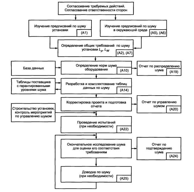 Схема процесса управления шумом представлена в приложении А, перечень решаемых задач (действий) - в приложении В.