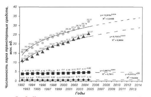 Приведение состава движения к расчетным нагрузкам осуществляли в соответствии с ОДН 218.046-01 [3]. Состав движения принят одинаковым для всех дорог, % - в среднем: легковые - 20, грузовые автомобили типа ГАЗ -23, грузовые автомобили типа ЗИЛ -25, грузовые автомобили типа МАЗ - 17, автопоезда типа КамАЗ - 10, автобусы типа ЛАЗ -5.