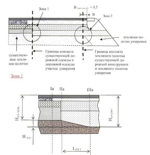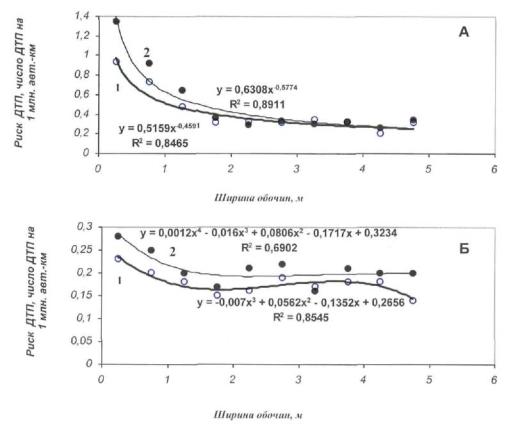 1 -укрепленные обочины, 2 - неукрепленные обочины
