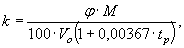 k - нижний концентрационный предел распространения пламени вещества при расчетной температуре, кг/м3 |