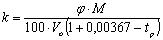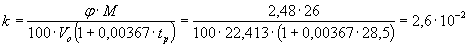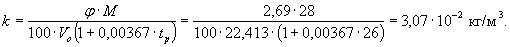 k - концентрация горючих газов или паров, равная нижнему концентрационному пределу распространения пламени, кг/м3.