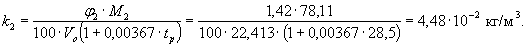 где k - нижний концентрационный предел распространения пламени вещества при температуре удаляемой смеси, кг/м3.
