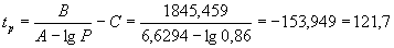 tp - точка росы в зависимости от парциального давления паров ЛВЖ, ГЖ и окислителей. |
