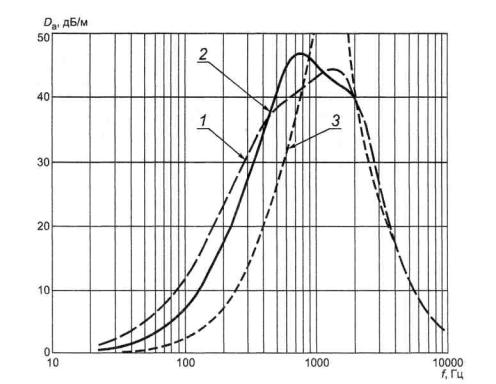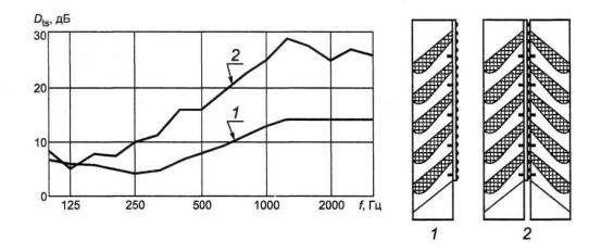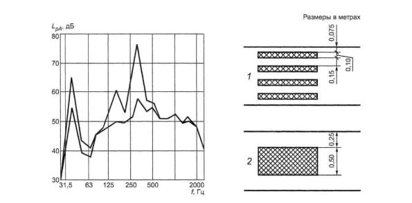 1 - 1/3-октавные полосы; 2 - октавная полоса