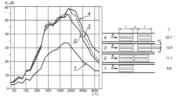 Как видно из таблицы В.1 и рисунка В.1, реальные значения ослабления в 1/3-октавных полосах частот совпадают с заявленными, однако заявленное производителем октавное значение ослабления 7 дБ существенно превышено для осевого вентилятора. Эффективность глушителя в данном случае значительно лучше, чем требуется. Напротив, соотношение между 1/3-октавными составляющими спектра шума радиального вентилятора с наклонными лопатками таково, что в октавной полосе достигается ослабление лишь 5 дБ. Заявленное значение 7 дБ в данном случае не было подтверждено при лабораторных испытаниях, выполненных в соответствии с [1].