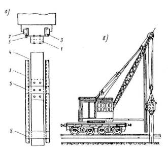 погружение железобетонных и стальных свай, шпунта и свай-оболочек* диаметром 0,4 - 0,8 м для фундаментов опор мостов и причалов;
