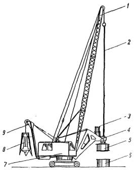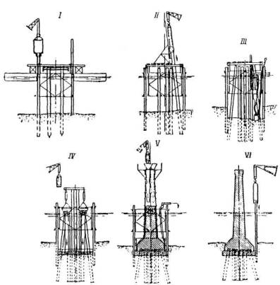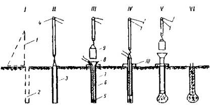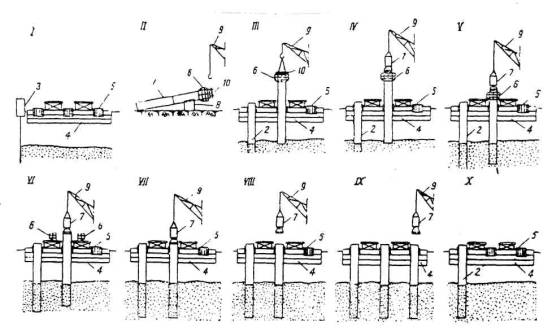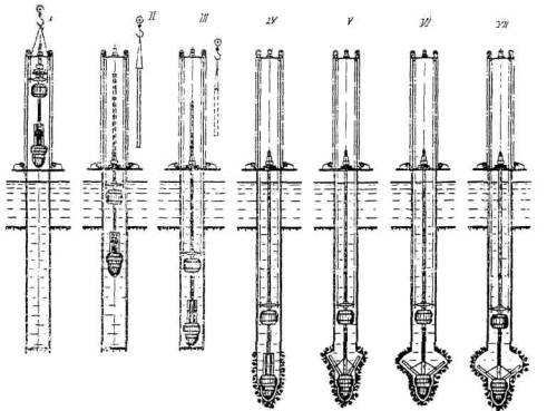 Подъем и опускание уширителя, арматурного каркаса и бетонолитной трубы |