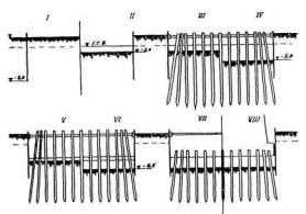 1.4. Настоящее «Руководство» действует одновременно с правилами глав СНиП III-Б.6-62 «Фундаменты и опоры из сваи и оболочек. Шпунтовые ограждения. Правила производства и приемки работ»; СНиП III-И.2-62 «Гидротехнические сооружения морские и речные транспортные. Правила организации строительства и приемки в эксплуатацию», а также с «Правилами техники безопасности и производственной санитарии на строительстве мостов и труб», «Правилами техники безопасности и производственной санитарии при производстве строительно-монтажных работ по постройке портовых гидротехнических сооружений» и ВСН 110-64 «Технические указания по вибропогружению оболочек», Тарифно-квалификационным справочником 1969 г. и главой 1 «Общая часть» к «Руководствам по организации труда».