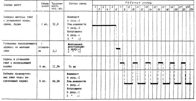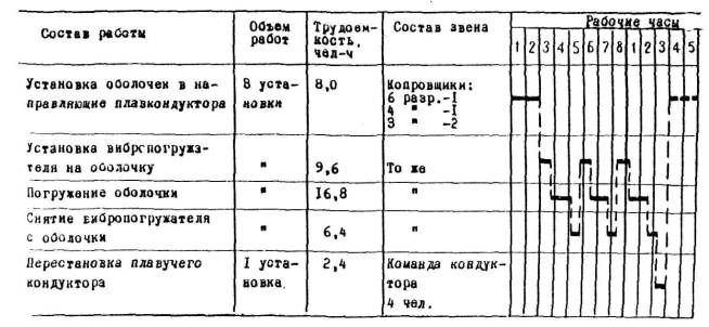 подвезен необходимый запас конструкции (свай, шпунта, оболочек), обеспечивающий непрерывный технологический процесс, завезены предусмотренные проектом механизмы, приспособления, инструменты, инвентарь и материалы;