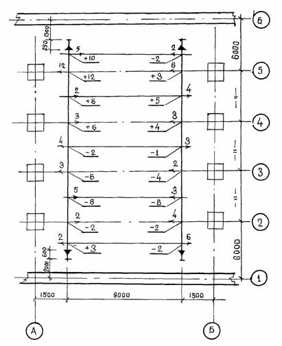 Рис. 12. Схема замеров при плановой исполнительной съемке подкрановых балок: