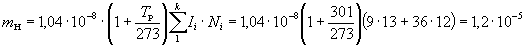 Мi - масса i-го вещества, поступающего в помещение в течение часа, кг. Если время поступления вещества меньше 1 ч, то в формулу (12) вместо Мi следует принимать массу этого вещества. |