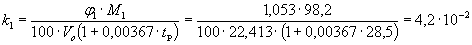 k - концентрация горючих газов или паров, равная нижнему концентрационному пределу распространения пламени, кг/м3.
