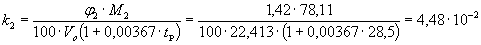 где k - нижний концентрационный предел распространения пламени вещества при температуре удаляемой смеси, кг/м3.