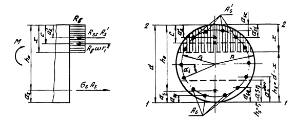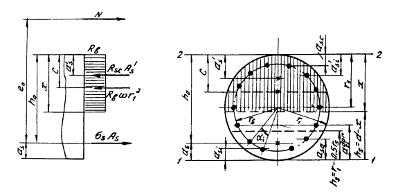 1.1. В настоящих Рекомендациях приводится расчет по прочности железобетонных элементов круглого сечения с различным расположением арматурных стержней как по контуру сечения, так и сосредоточенно в местах наибольших напряжений.