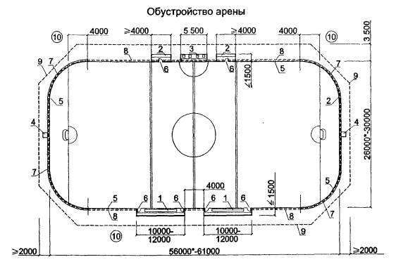 секретариата; 4 - места судей за воротами; 5 - борт высотой 1170-