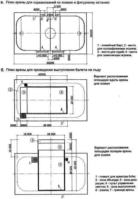 3.1.1. Строительные размеры, площади и пропускная способность катков с искусственным льдом должны приниматься в соответствии с правилами по организации учебно-тренировочных занятий и проведения спортивных соревнований.