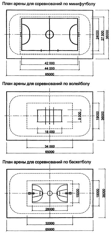 1.3. Габариты и разметка игровых и тренировочных полей и площадок, параметры зон безопасности, установленные правилами проведения соответствующих видов соревнований, следует принимать как обязательные технологические требования при проектировании.
