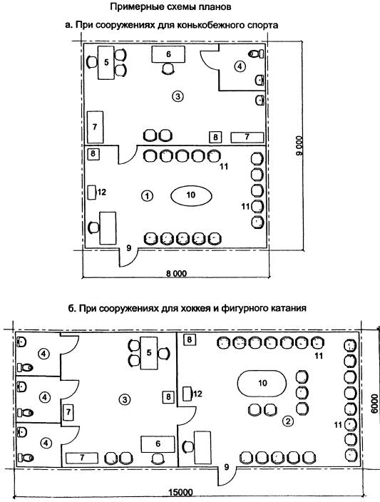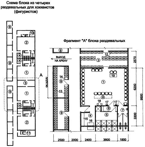 Рис. 4.4 Варианты планировки раздевалок для фигурного катания