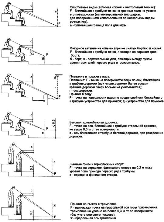 Рис. 4.8 Расположение наблюдаемой точки F при соревнованиях по различным видам спорта