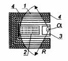 Экспликация: 1 - трибуны; 2 - партер; 3 - эстрада; 4 - «потерянные» места. Примечания: 1. Над чертой приведены данные для залов с ареной размером 65×36 кв.м, под чертой - с ареной 48×26 кв.м. 2. α - максимально допустимый горизонтальный угол, в пределах которого должны располагаться зрительные места; R - максимально допустимое удаление зрительских мест. |