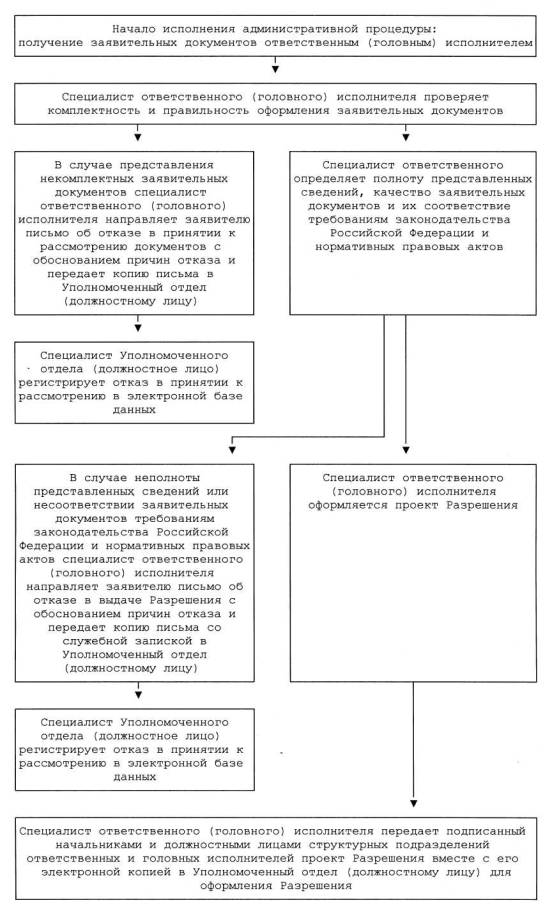 4. Исполнение государственной функции по выдаче разрешений на применение конкретных видов (типов) технических устройств на опасных производственных объектах (далее - Разрешение) осуществляется по представлению юридическими лицами письменного заявления (приложение N 1 к Регламенту) с сопроводительной документацией (далее - заявительные документы) и включает в себя следующие административные процедуры: