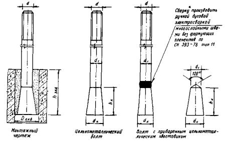 Опыт эксплуатации на протяжении многих лет различного технологического оборудования, закрепленного с помощью самоанкерующихся конических болтов, практика применения их для крепления металлических колонн к фундаментам показали целесообразность, надежность и экономичность* такого способа крепления.