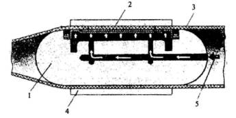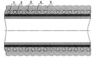 1 - внутренняя резиновая камера; 2 - текстильный слой; 3 - проволочная спираль;