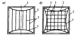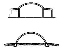г) оболочки и волнистые своды отрицательной гауссовой кривизны - оболочки, очерченные по линейчатым поверхностям гиперболического параболоида (гипары) (рис. 4.1, г); и по поверхностям вращения с горизонтальной осью (рис. 4.1, е, 11);