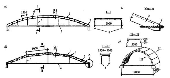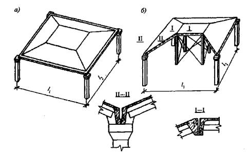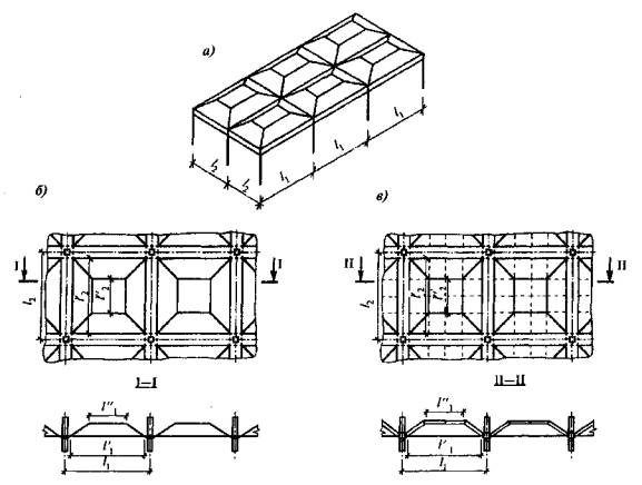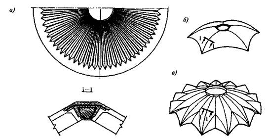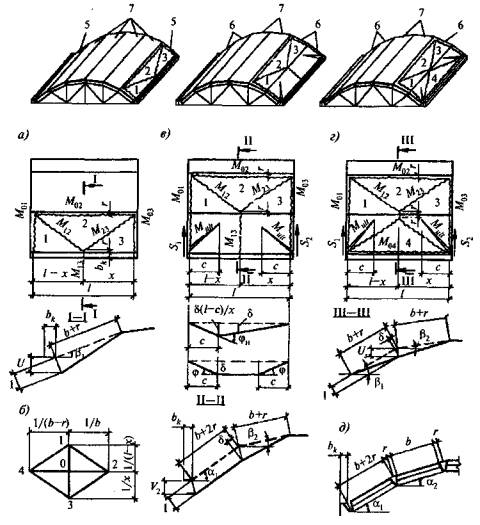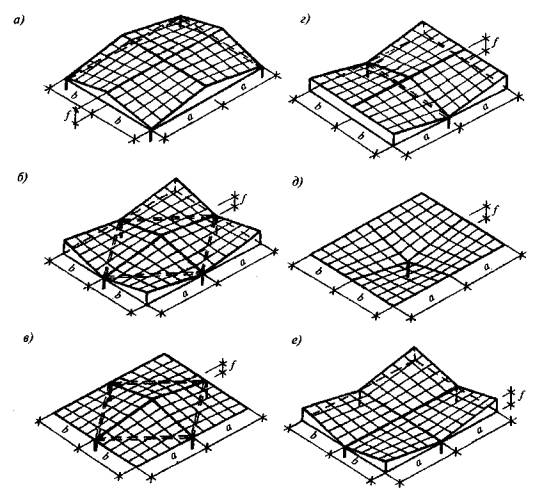 Рисунок 4.1 - Схемы тонкостенных пространственных конструкций покрытий и перекрытий