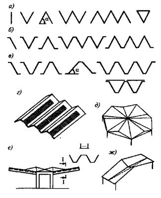 а) складки с различной формой поперечного сечения, в том числе складчатые своды и оболочки (рис. 4.1, а);