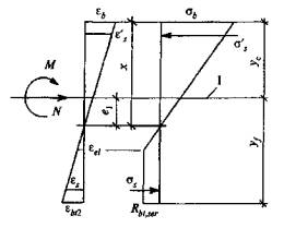- расстояния от точки приложения продольной силы Nao равнодействующей усилий в арматуре соответственно S и S'; |