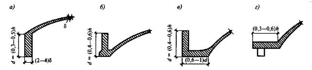ж) составные оболочки, имеющие сложную поверхность, образуемые из оболочек, предусмотренных подпунктами б, в, г, д, е (рис. 4.1, к, л);