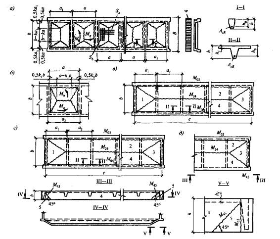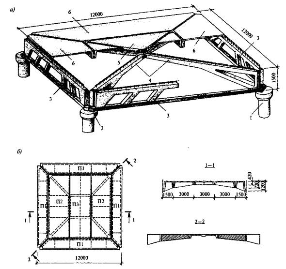 з) вспарушенные плиты, в том числе ступенчато-вспарушенные шатровые и рамно-шатровые панели (рис. 4.1, м, 16);