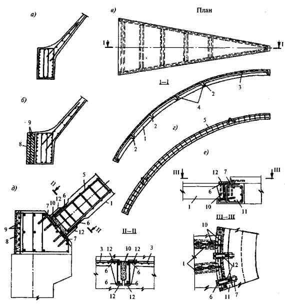 б) сборно-монолитные (когда сборные элементы служат несущей опалубкой или, например, бортовые элементы сборные, а плита-оболочка - монолитная);
