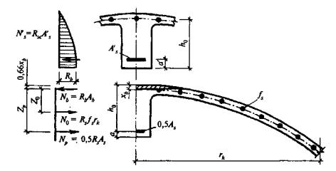 - погонные усилия, воспринимаемые арматурой полки сборного элемента соответственно в растянутой и сжатой зонах. |