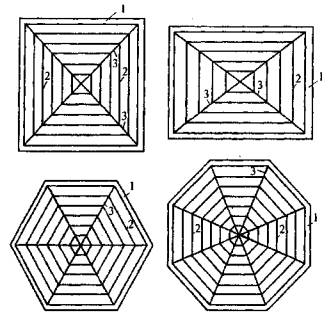 е) многогранники, в том числе вписанные в поверхности оболочек, предусмотренные подпунктами б, в, г, д (рис. 4.1, з); а также шатровые складки (рис. 4.1, и);