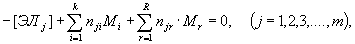 где m - количество элементов, входящих в рабочее тело; Uп, Uпi, Uпr - полная внутренняя энергия системы в целом и полная внутренняя энергия i-го газообразного компонента и r-гo конденсированного компонента при температуре Т соответственно; nji, njr - стехиометрические коэффициенты, т.е., числа атомов j-го элемента в i-м или r -том компоненте; p - давление.