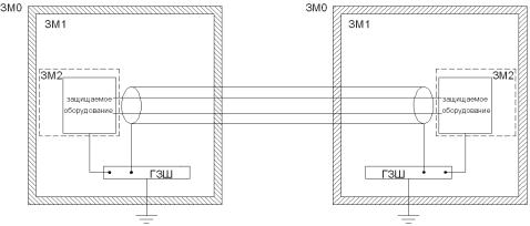 3.19 Зона молниезащиты: Область пространства внутри и снаружи здания, характеризуемая уровнем микросекундных импульсных помех большой энергии и напряженностью импульсного электромагнитного поля.