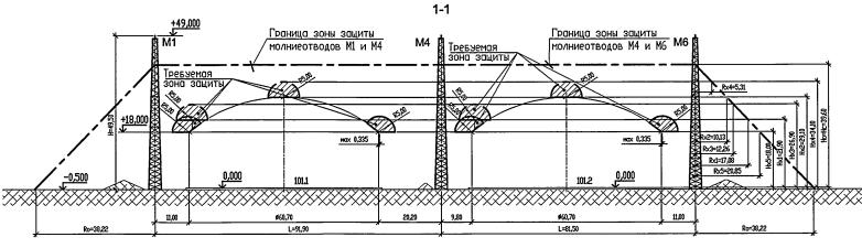 Таблица Г.4 - Расчет зоны защиты двойного тросового молниеотвода